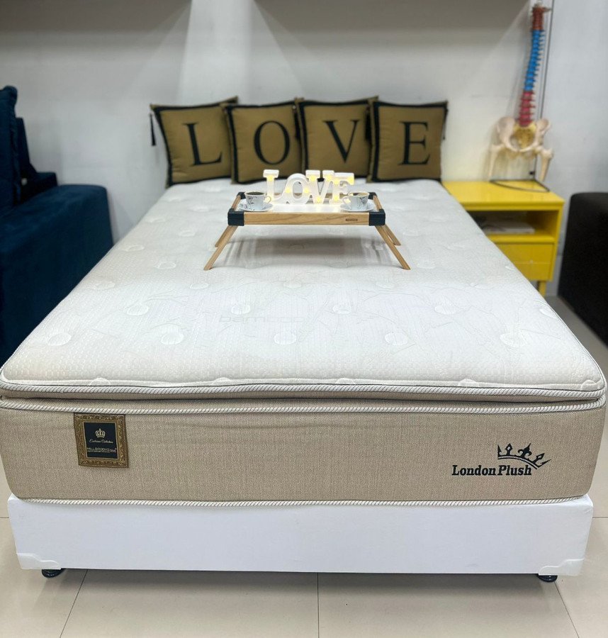 Conjunto - Colchão de Molas London Plush + Base Box Inteiriço Premium Casal Corino Branco 1,38x1,88x