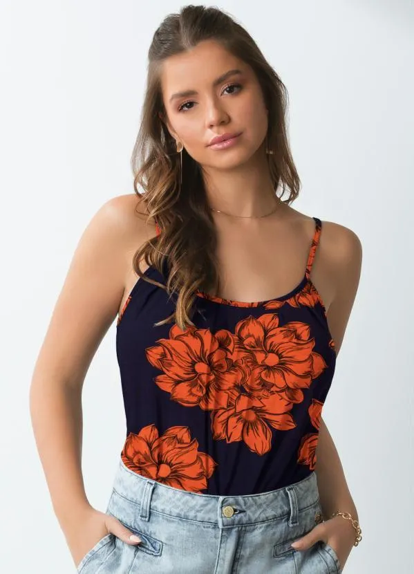 Quintess - Blusa de Alça Floral Laranja