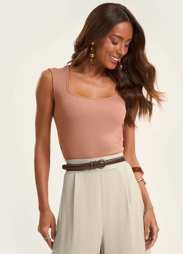 Rovitex - Regata Feminina em Ribana de Viscose Marrom