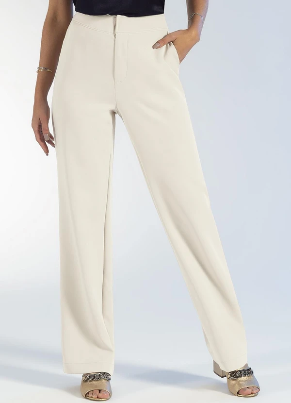 Gris - Calça Feminina de Alfaiataria Alta Bege