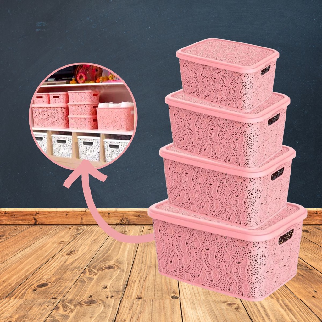 PROMOÇÃO Caixa Organizadora Com Tampa Renda Floral Varios Tamanhos Queima de estoque