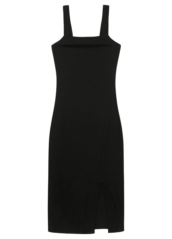 Malwee Plus - Vestido Mídi Floral com Torção Preto