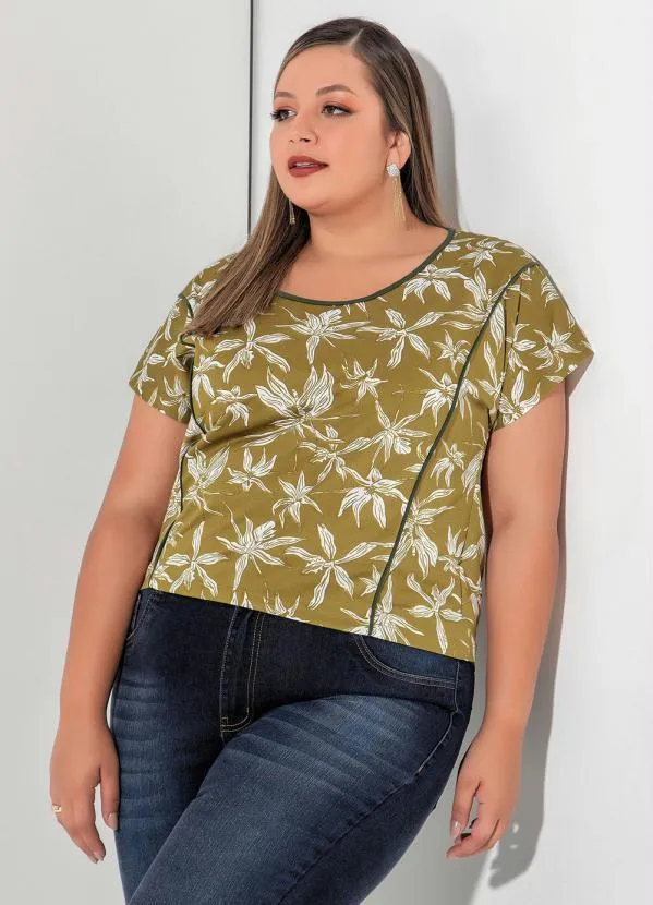 Queima Estoque - Blusa Floral Verde Ombros Deslocados Plus Size