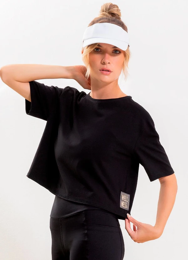 Cativa - Blusa Estilo Cropped Aviamento Decorativo Preto
