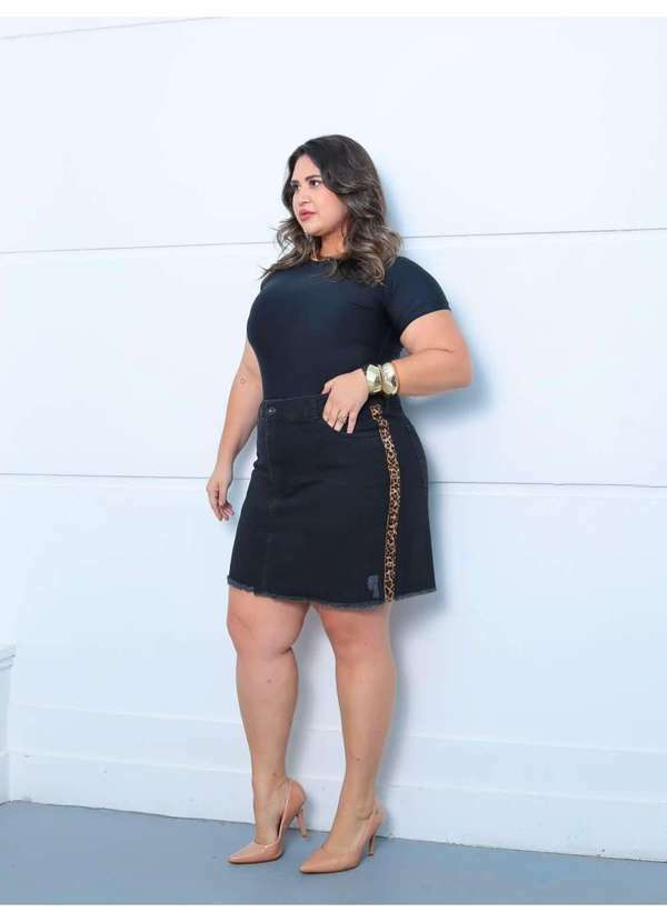 Razon Jeans - Saia Jeans Plus Preto com Faixa - Preto
