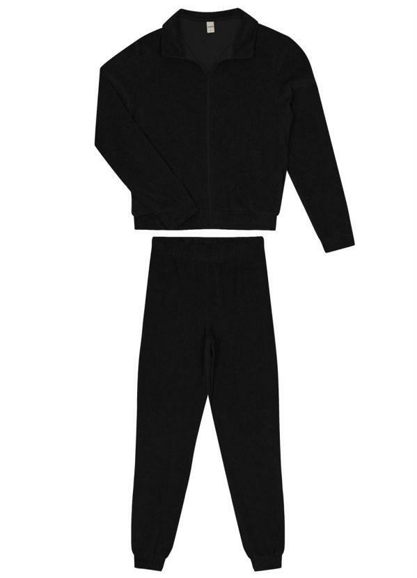 Rovitex - Conjunto Feminino Jaqueta com Calça Plush Preto