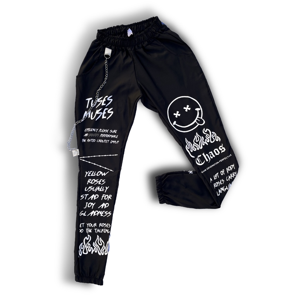 Moda Pop - Calça Jogger Preta com Estampa na Perna