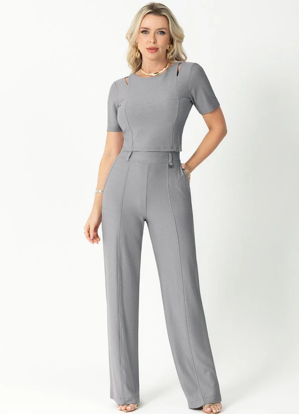 Gris - Conjunto Feminino Canelado Elegante Cinza