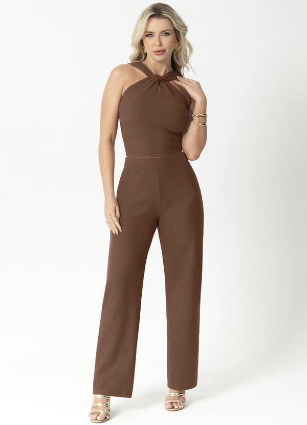 Gris - Conjunto Feminino Canelado Elegante Marrom