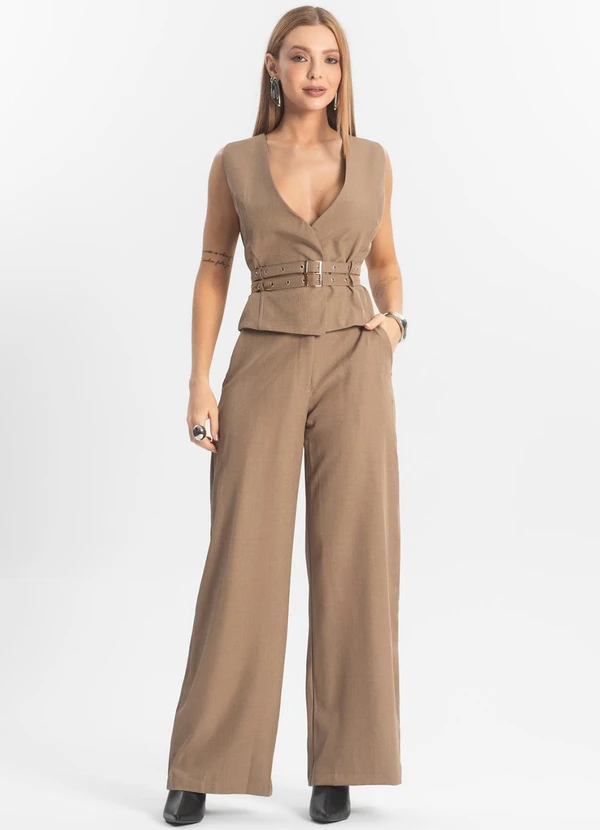 Rovitex - Conjunto Feminino Calça e Colete Veshine Bege
