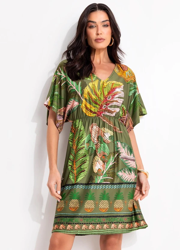 Quintess - Vestido Folhagem Tropical em Malha Fria
