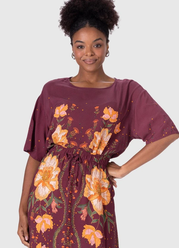Malwee - Blusa Feminina Cropped Floral Roxo