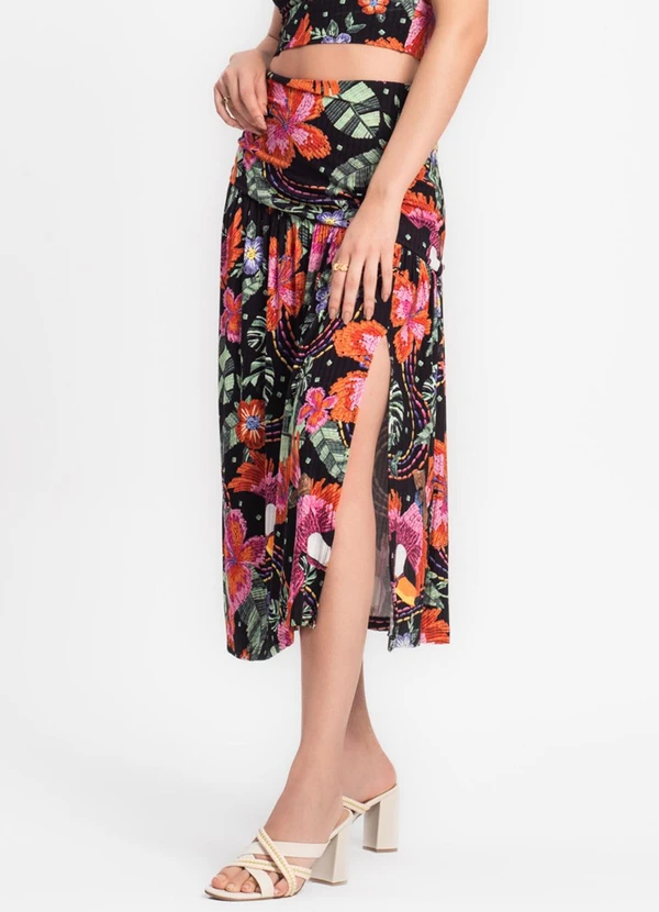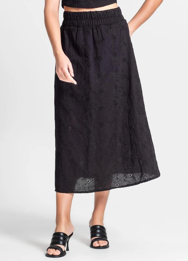 Endless - Saia Midi Feminina em Ribana Canelada Preto