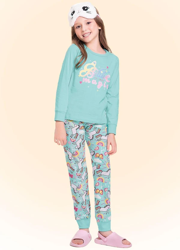 Fakini Kids - Conjunto Pijama Blusa M/Longa/Calca Azul