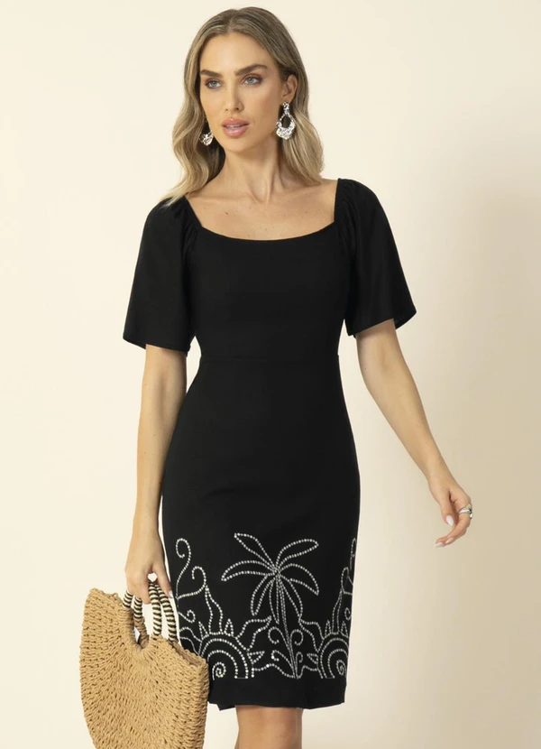 Gris - Camisa Feminina com Bordado na Gola Preto