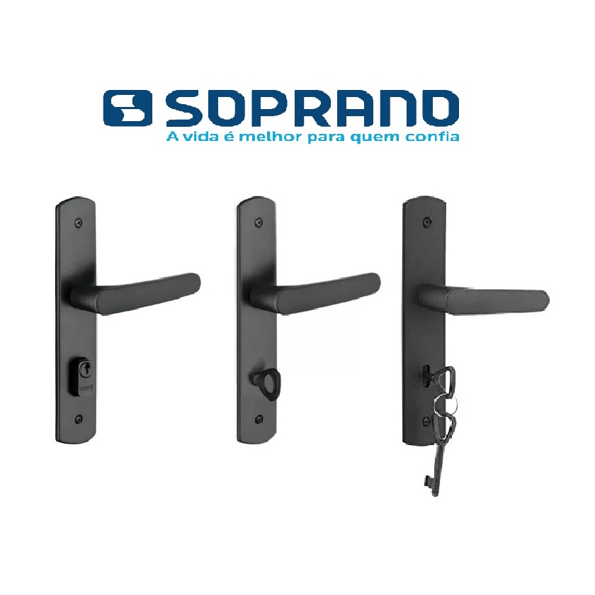 Fechadura Banheiro Alavanca Interna Externa Ipanema Preta ESP27 (40x53) - Soprano