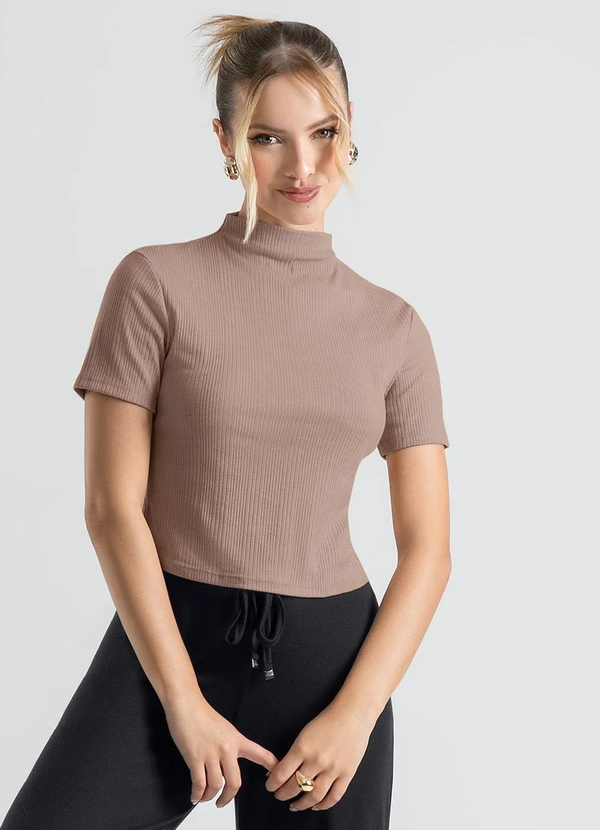 Cativa - Blusa Gola Alta em Canelado Marrom Claro