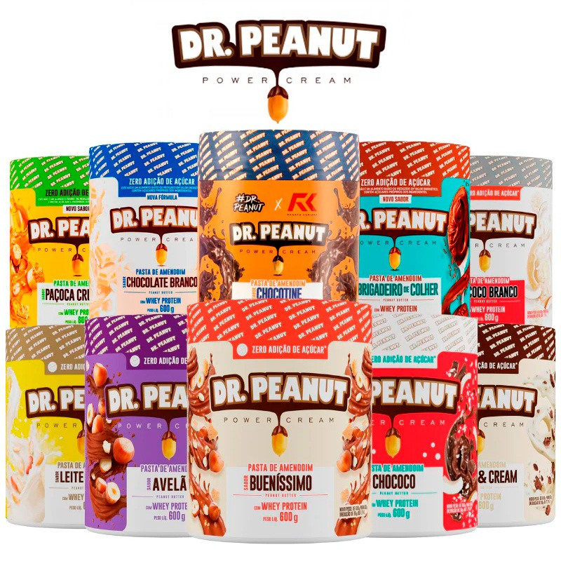 KIT 5X PASTA DE AMENDOIM 600G COM WHEY PROTEIN - DR PEANUT