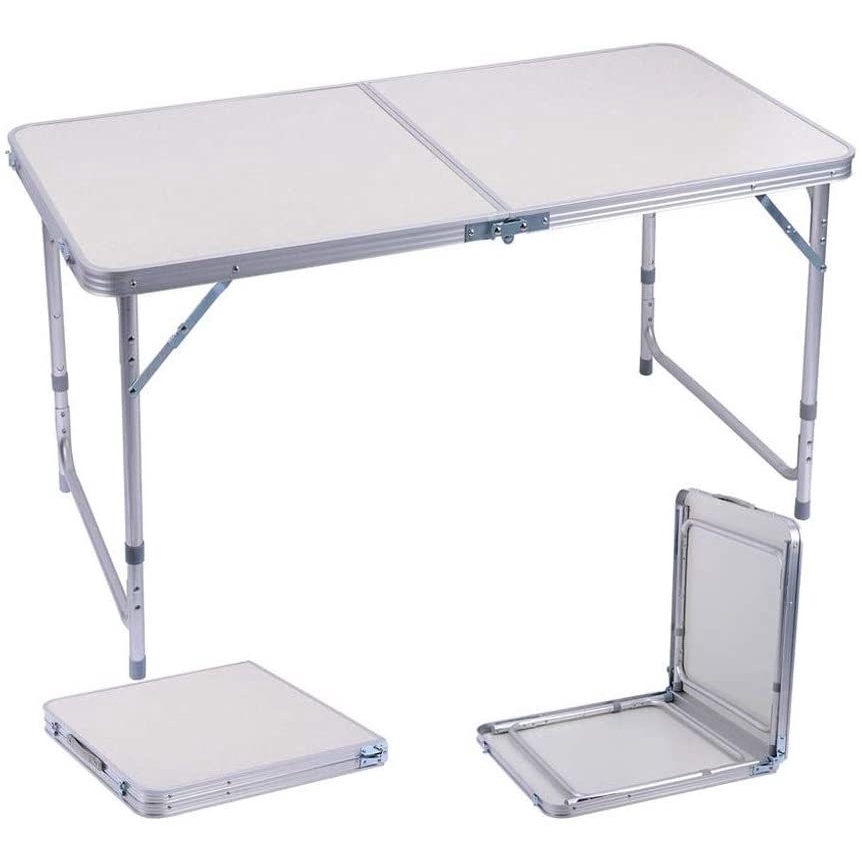Mesa Dobrável Portátil De Plástico Que Vira Maleta Com Alça Para Camping Churrasco Praia 152X60cm Branco