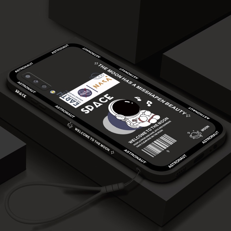 Caixa Samsung A5 A6 2018 A6 Plus A7 2018 A8 A9 2018 Astronauta Fofo Silicone Macio Borda Reta anti-Impressão Digital De Proteção Queda Para Telefone Celular Com Cordão
