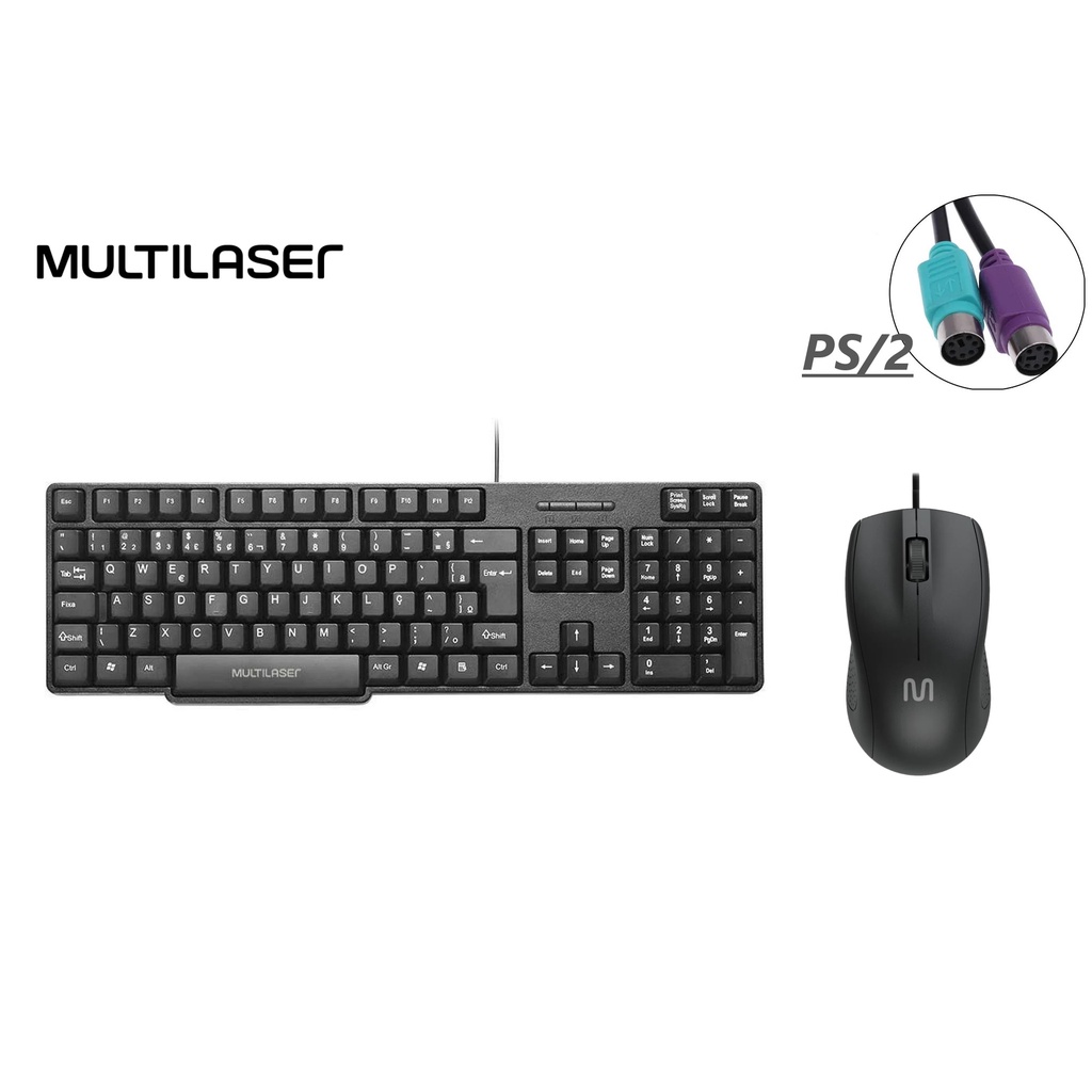 Kit Teclado e Mouse Com Fio PS/2 Conector Antigo ps2 Cabo 130cm Preto - Multilaser