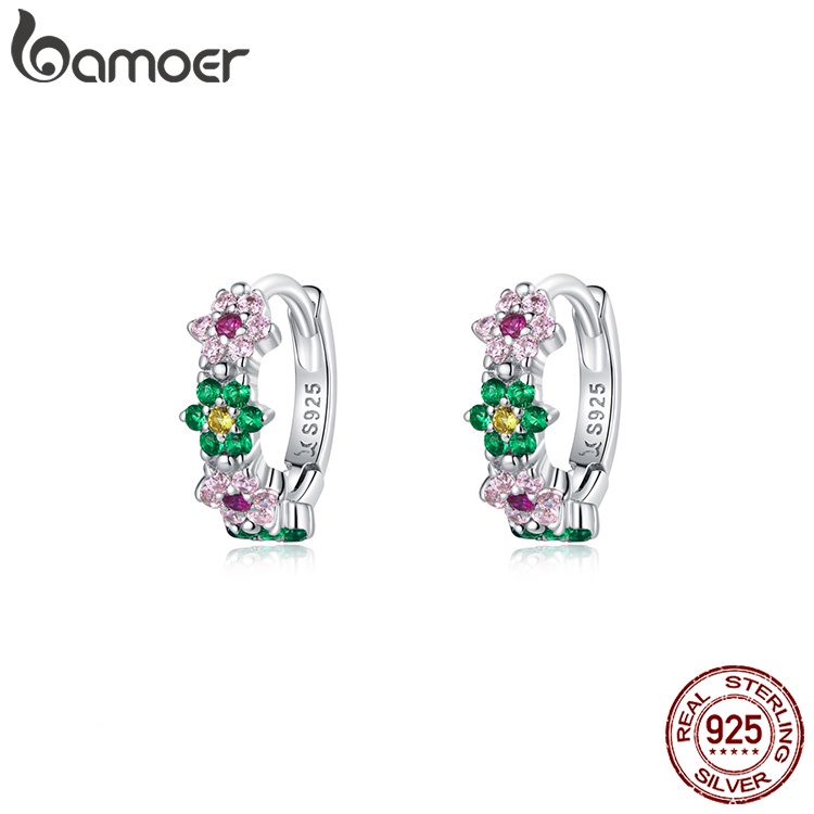 Bamoer 1 Par De Brinco De Prata Esterlina 925 Com Flores Delicadas Adequada Para Pulseira SCE1320