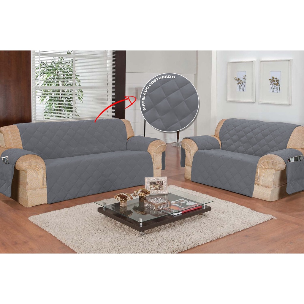 Capa Protetor de Sofá Vários Tamanhos Matelado Com Porta Acessórios 3x2, 4, 3, 2, 1 - Lugares