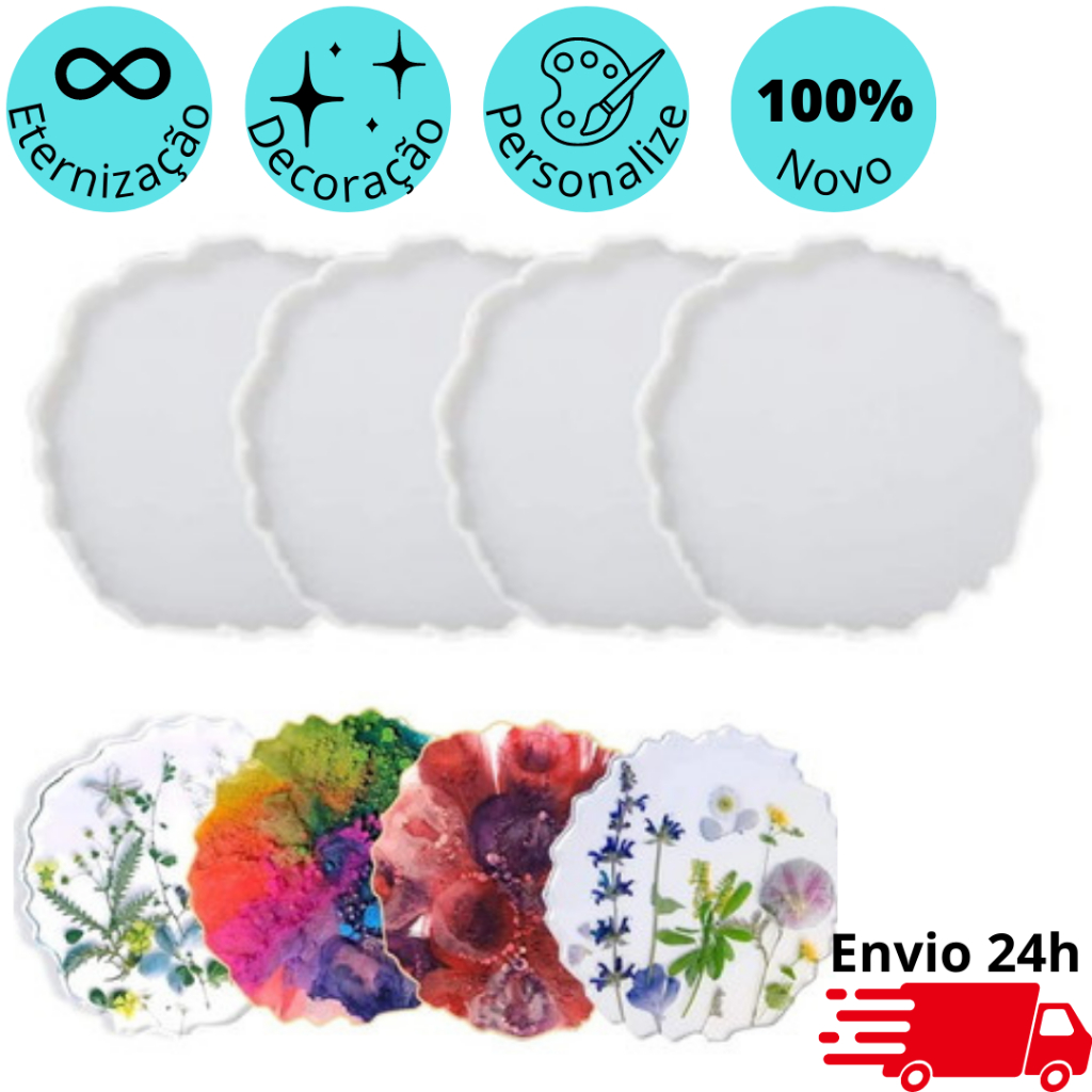 1 Molde de silicone redondo irregular porta copo para resina epóxi eternização bandeja coaster decoração artesanato diy bisquit geométrico com borda circular fundição moldagem uv faça você mesmo