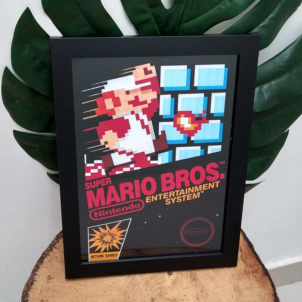Quadro decorativo com moldura e vidro Super Mario Bros NES pôster gamer geek