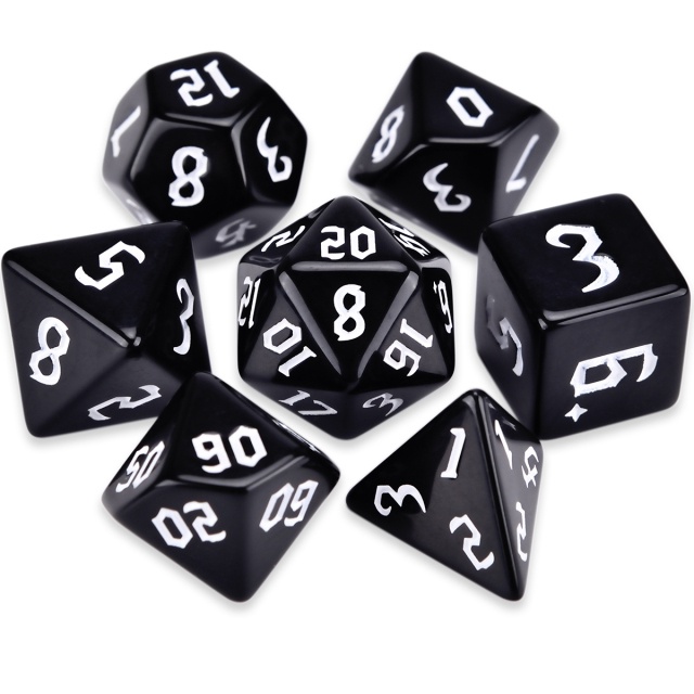 Jogo Kit com 07 Dados de RPG Dungeons And Dragons D&D Poliédricos D4 D6 D8 D10 D10% D12 D20 Para RPG De Mesa