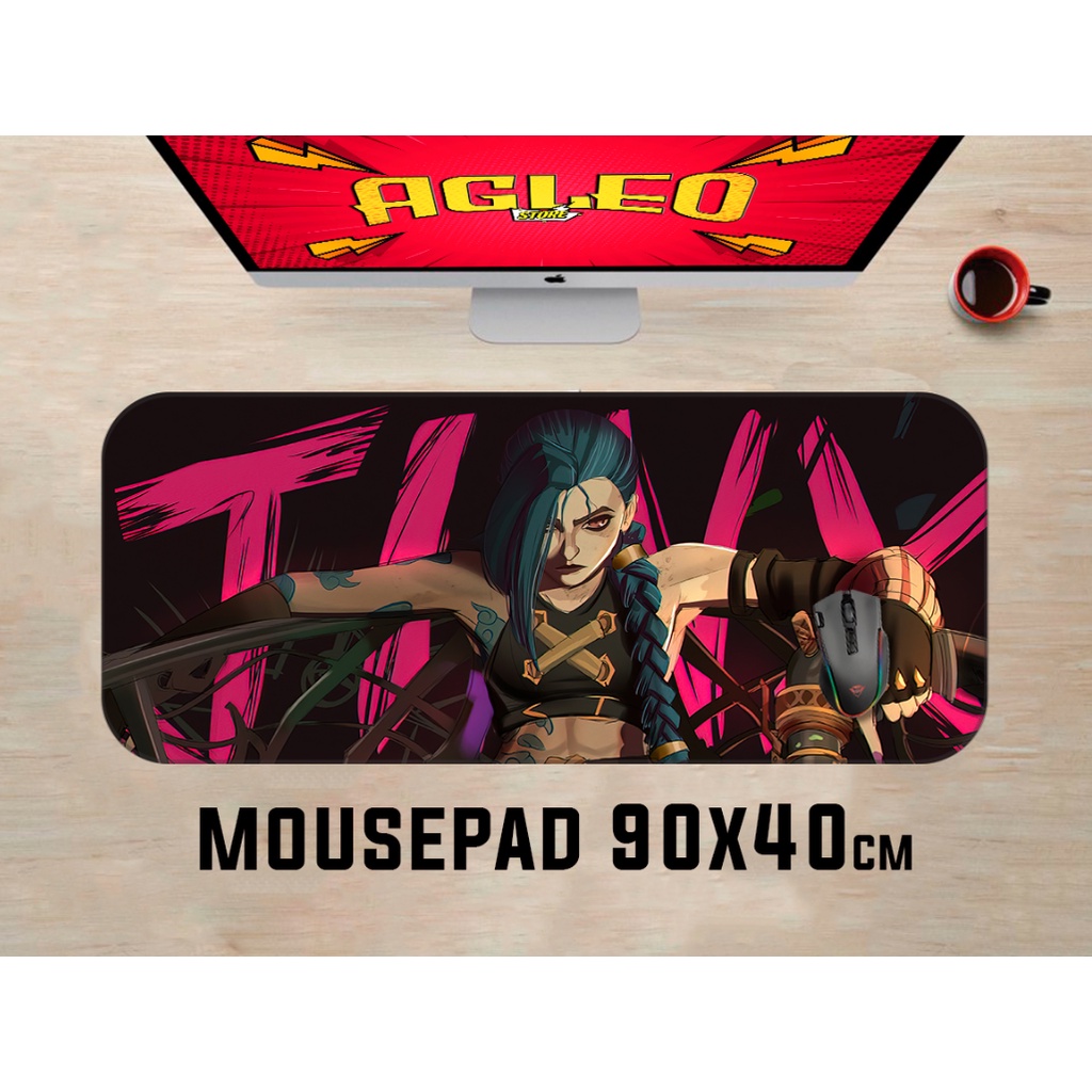Mouse Pad Gamer Jinx LOL League Of Legends Arcane Extra Grande 90x40cm Borda Costurada