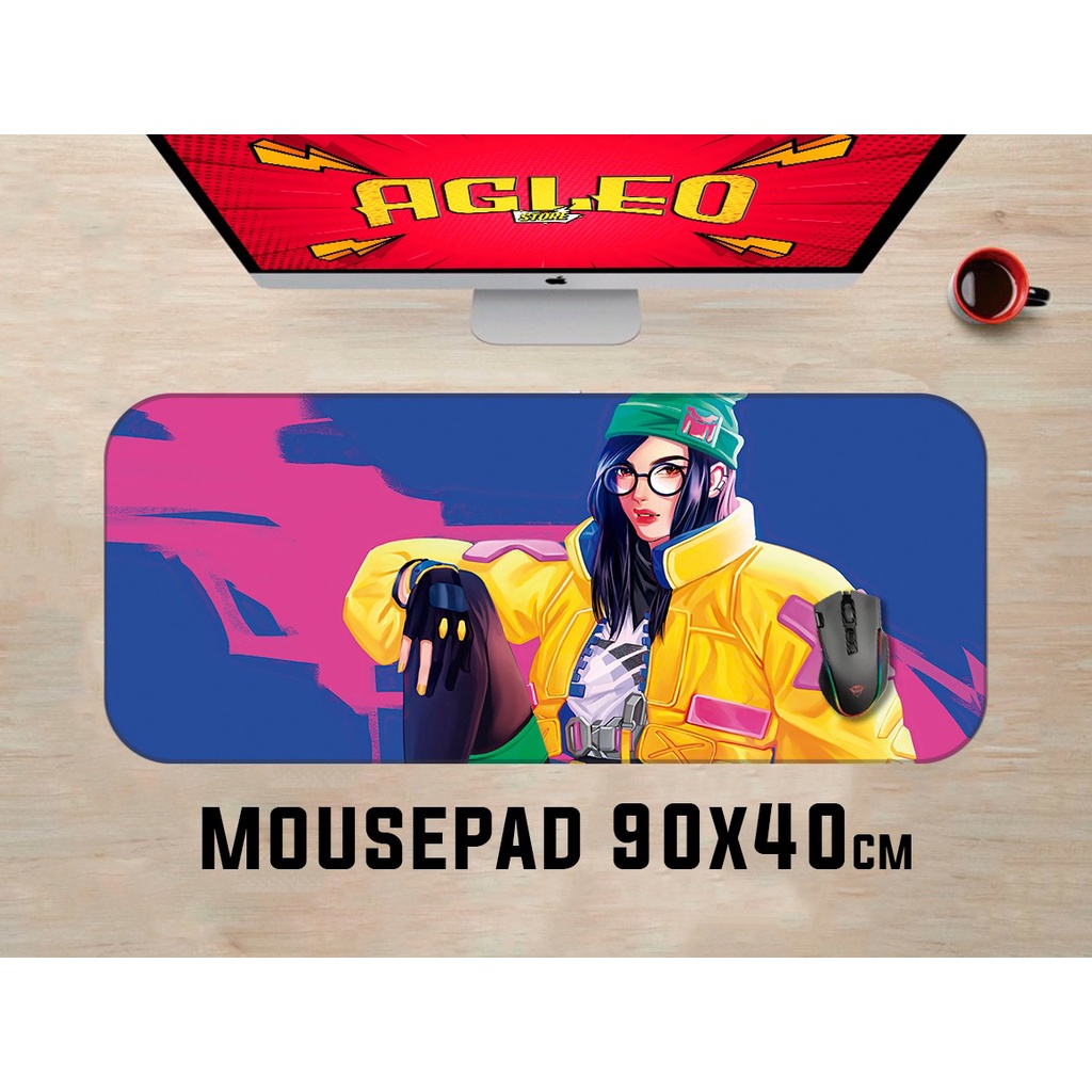 Mouse Pad Gamer Valorant Extra Grande 90x40cm Borda Costurada Reyna Jett Sage Killjoy Omen Sova Viper Skye
