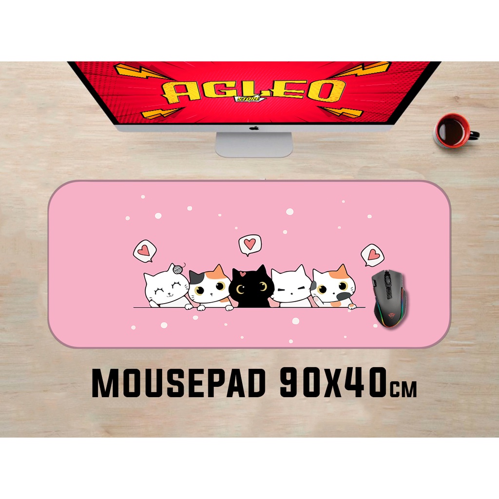 Mouse Pad Gamer Gatinhos Extra Grande 90x40cm Borda Costurada cut pets