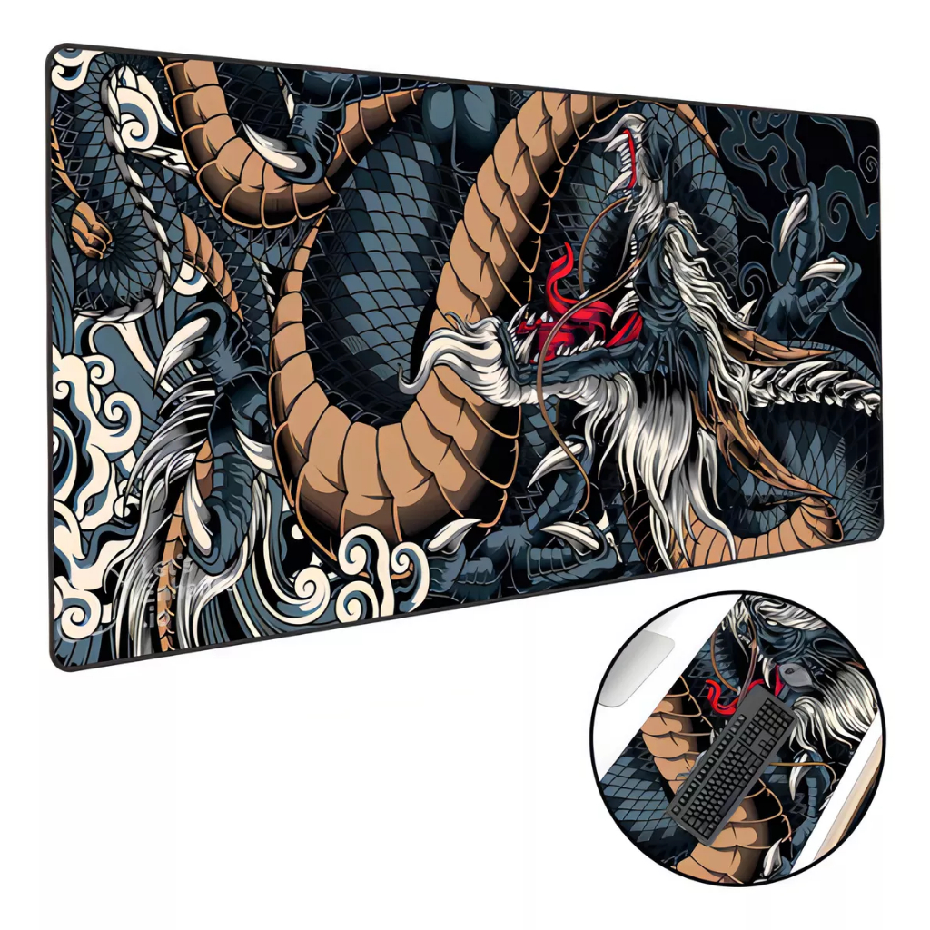 Mouse Pad Gamer Dragão Azul 90x40cm Extra Grande Borda Costurada Exbom