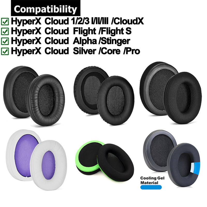 1 Par De Fones De Ouvido Para HyperX Cloud I II III 1 2 3/X CloudX/Flight S/Alpha/Stinger/Silver/Core/Pro Almofadas Esponja