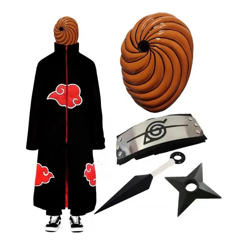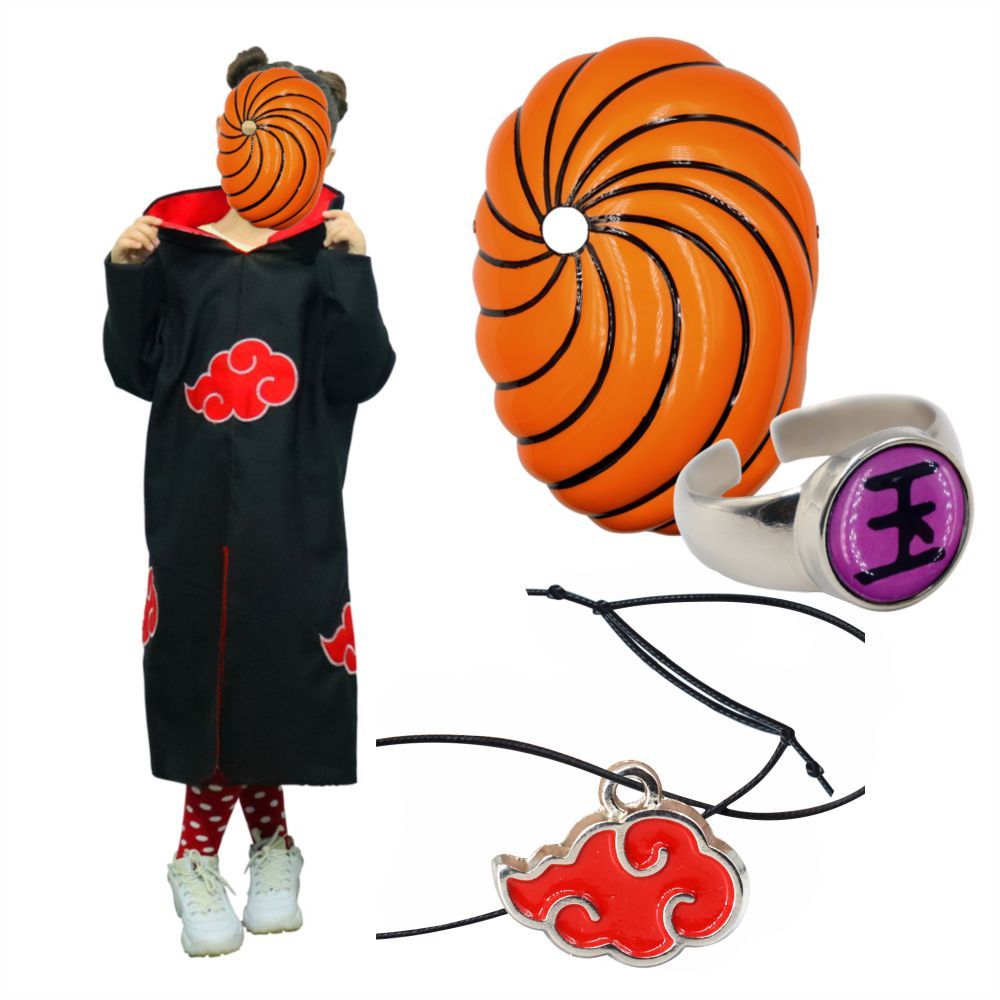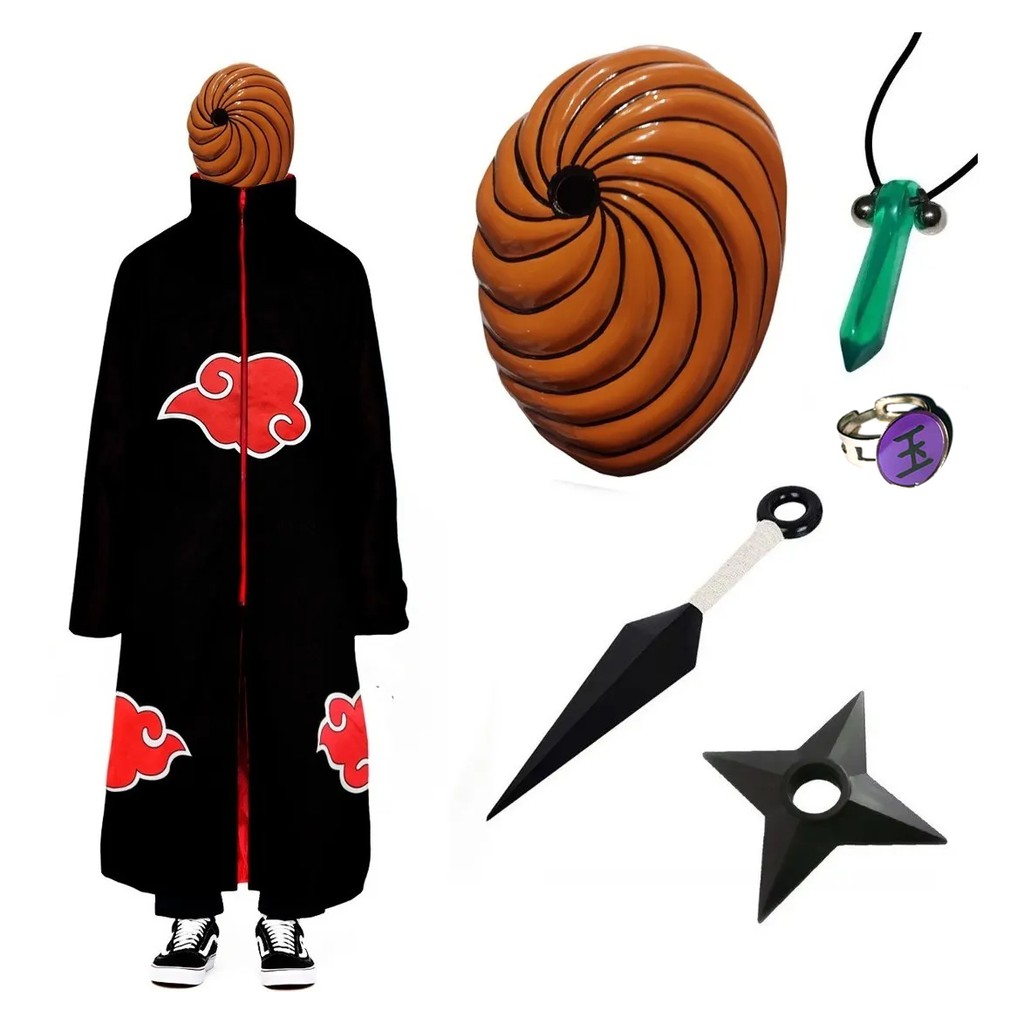 Kit Manto Akatsuki Máscara Tobi Kunai Shuriken Colar Anel T06 capa Akatsuki