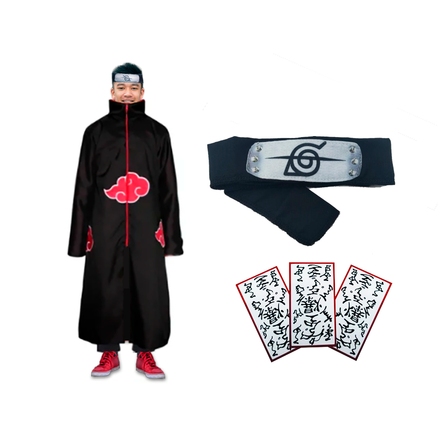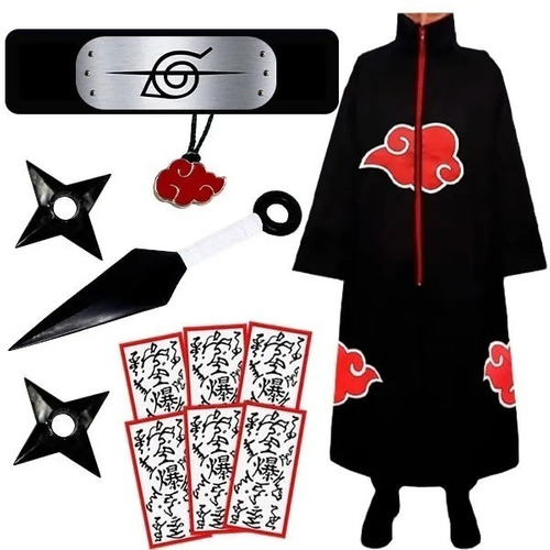 Kit Manto Akatsuki + Bandana Kunai Shuriken Colar - Naruto