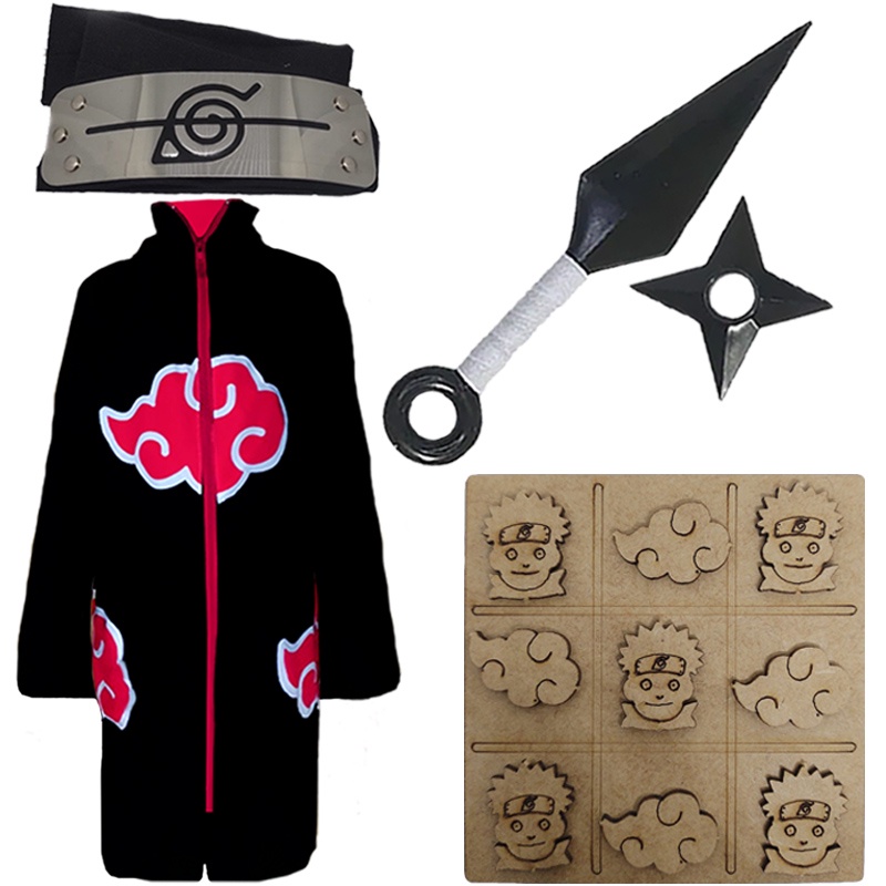 Manto + Bandana Vila da Folha Renegada + Kunai + Shuriken + Jogo da Velha Naruto