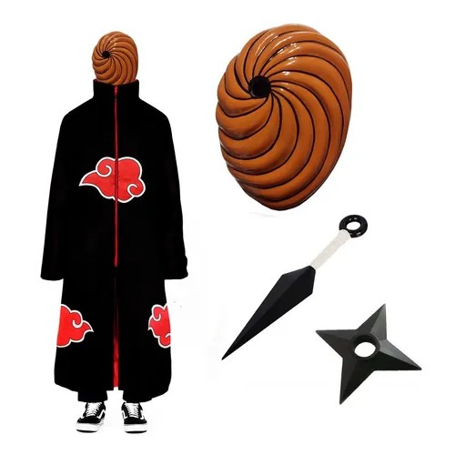 Kit Manto Akatsuki Máscara Tobi Kunai Shuriken Colar Anel T06 capa Akatsuki