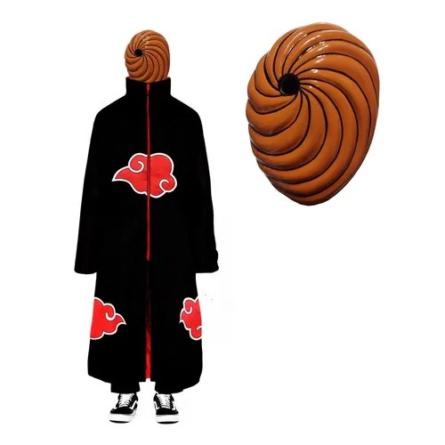Kit Manto Akatsuki + Máscara Tobi - Naruto Cosplay Manto Capa Akatsuki T01