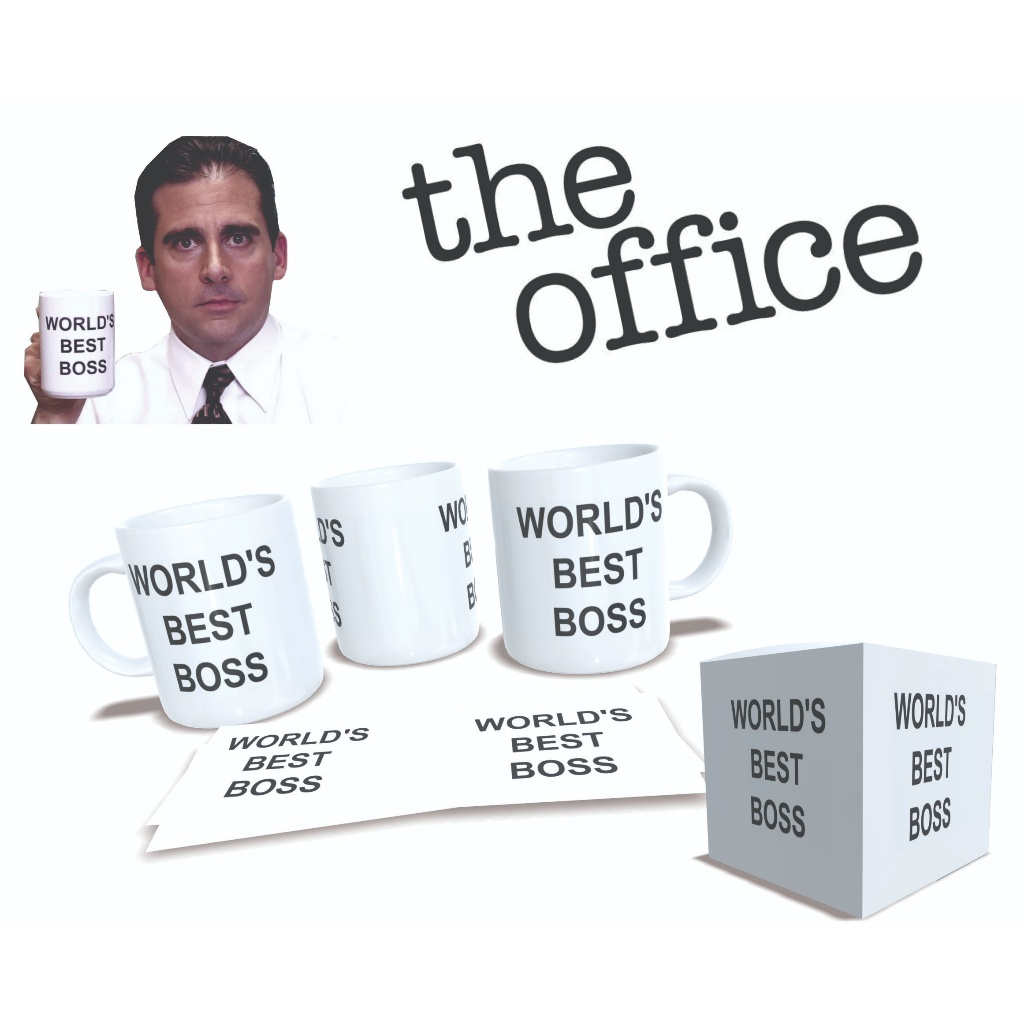 Caneca Personalizada Seriado The Office - World's Best Boss + Caixinha de Presente Branca