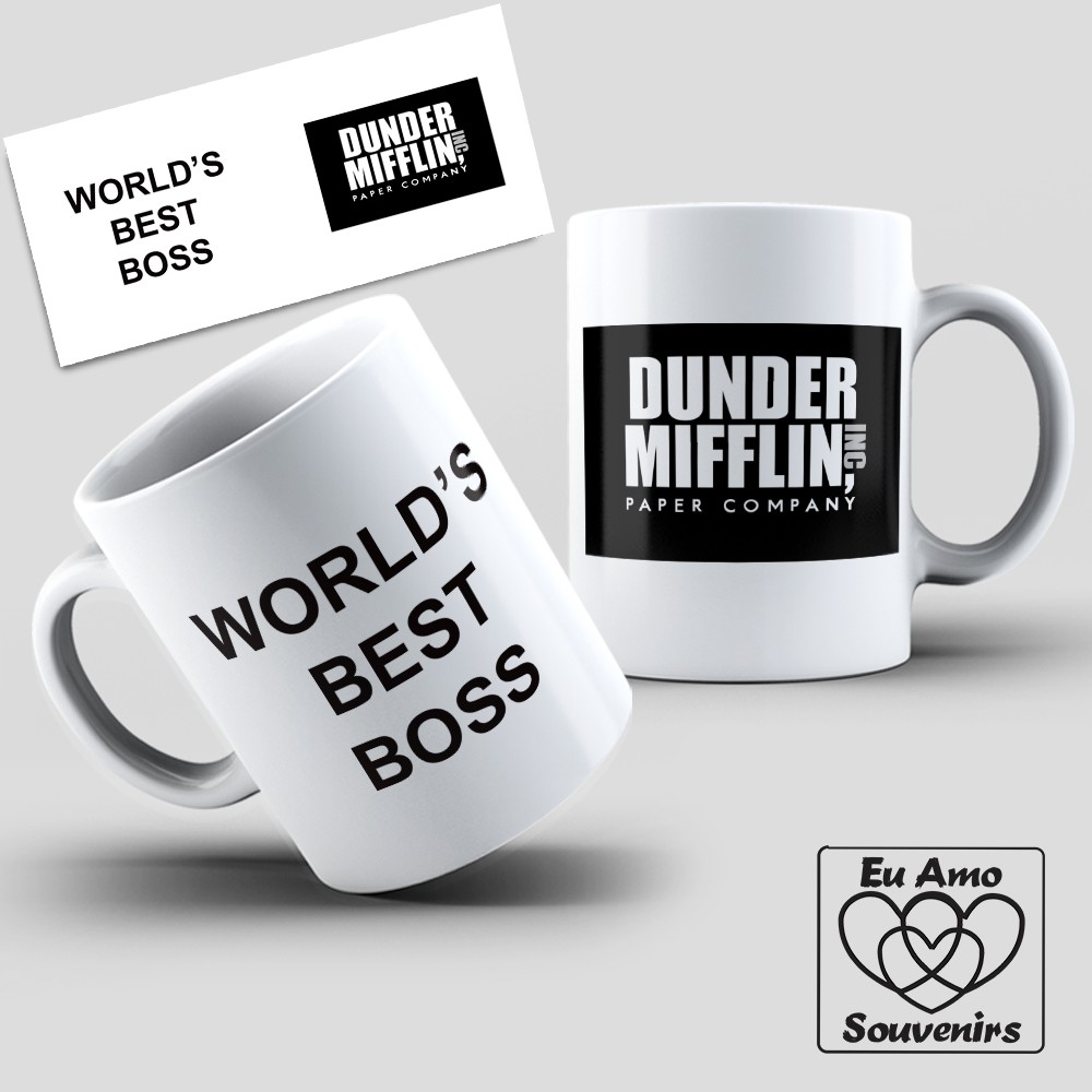 Caneca xícara de cerâmica porcelana série The Office World´s Best Boss Dunder Mifflin com embalagem para presente