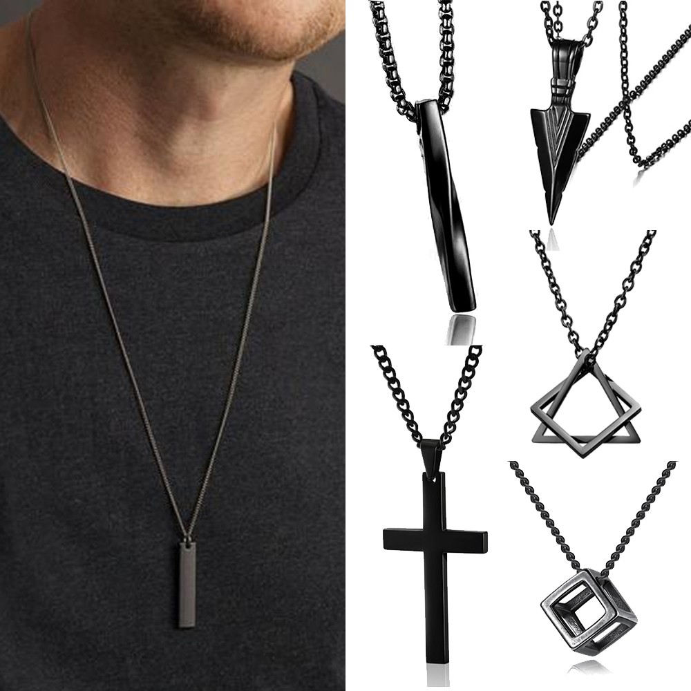 Colar De Pingente Masculino Preto De Aço Inoxidável Geometria Simples Barra Quadrada / Cruz / Triângulo / Seta / Espiral Colares
