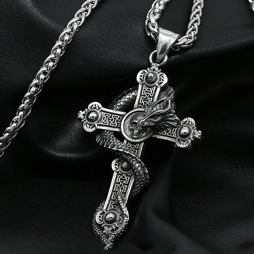 Caveira Punk Estilo Dominativo E Colar Pingente De Cruz De Dragão Para Colares De Pterossauros Góticos Masculinos Presentes De Jóias