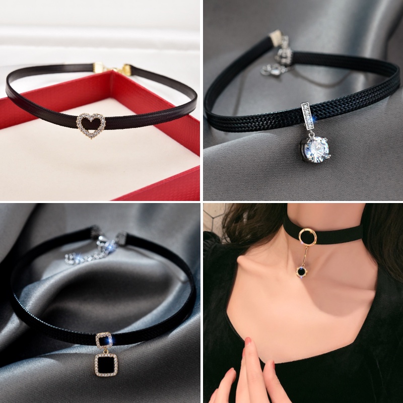 Gargantilha Para Mulher Colares De Corda De Couro Colar De Corrente Colarinho Cinto Preto Jóias De Pescoço Curto Presente