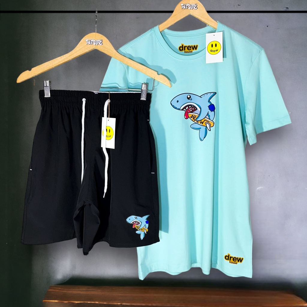 Kit Conjunto Masculino Drew House Shark Drew House Smile Camiseta Algodão e Bermuda em Elastano