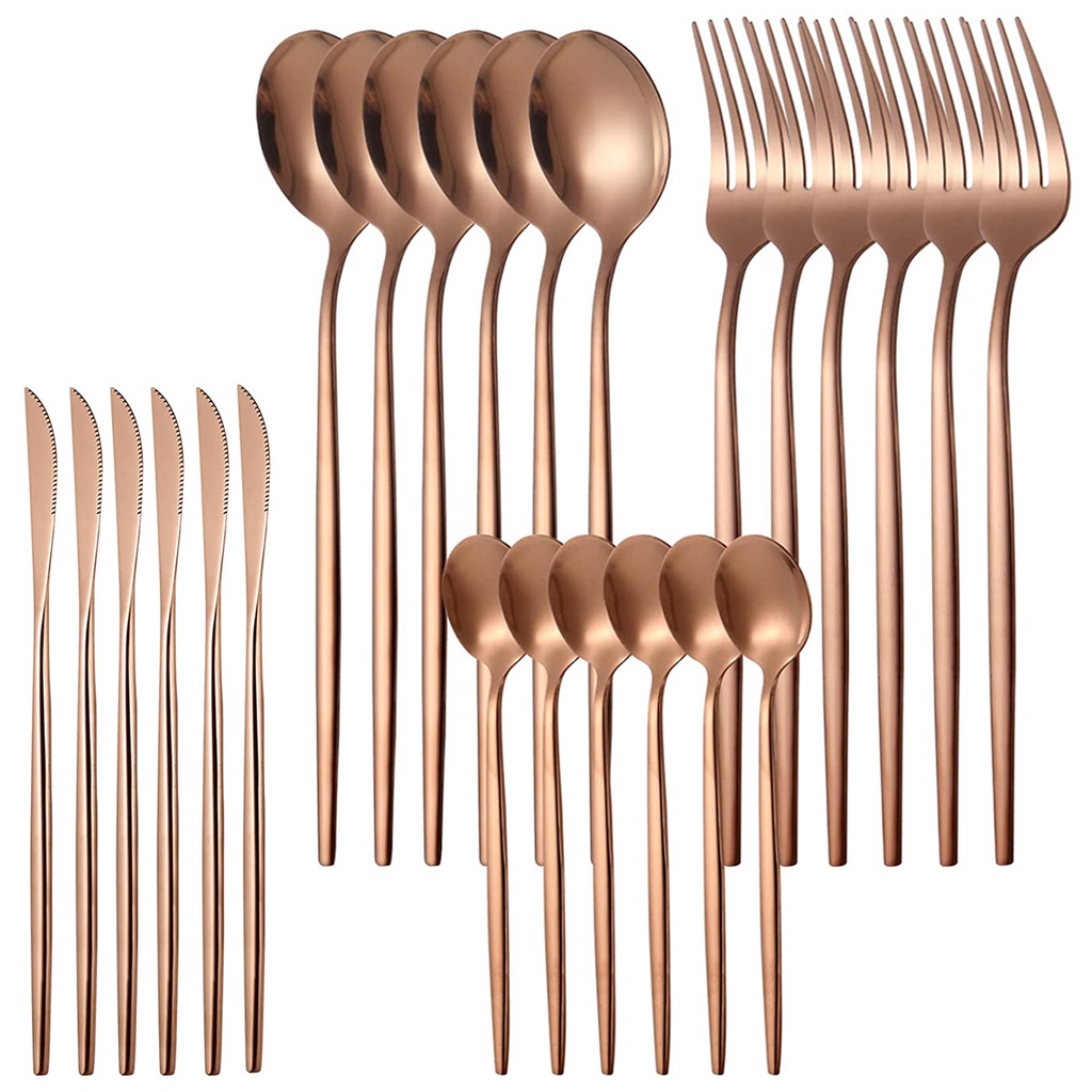 Talheres de Aço Inox 24 Peças Cor Rosa ouro , Garfo e Colher e Faca