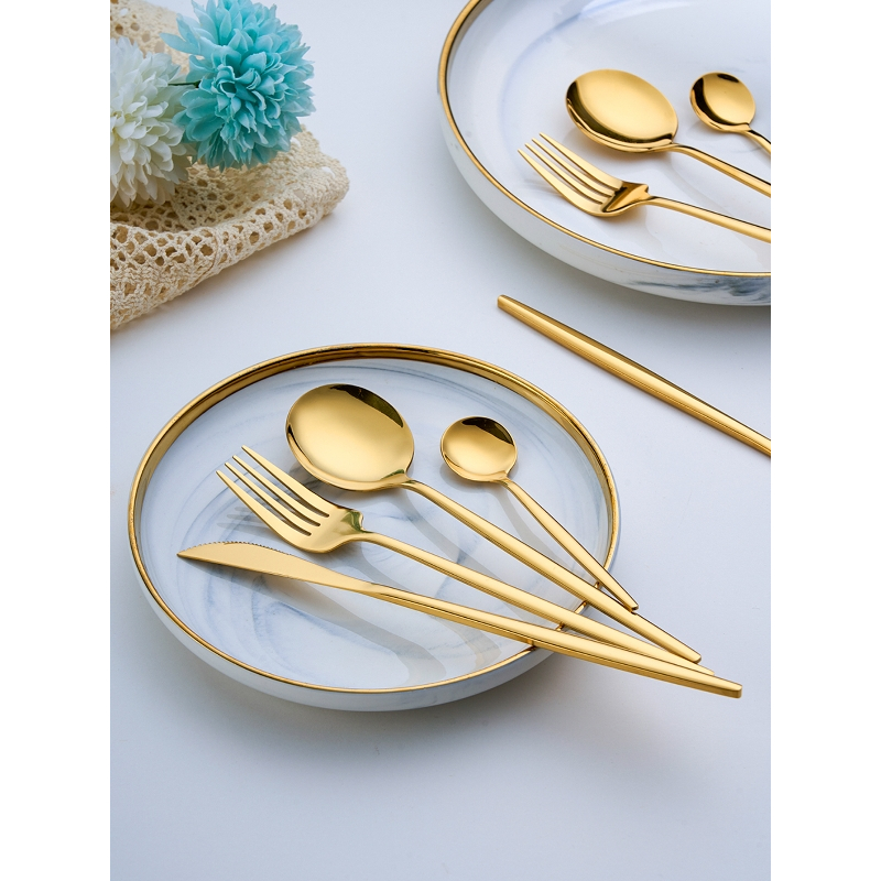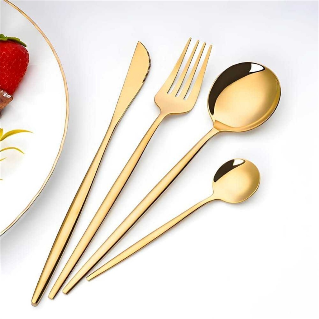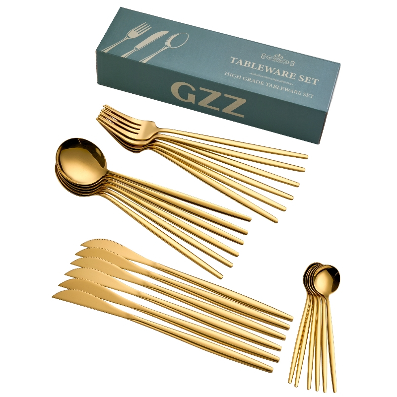 GZZ Talheres de Aço Inox 24 Peças Cor Dourada , Garfo e Colher e Faca