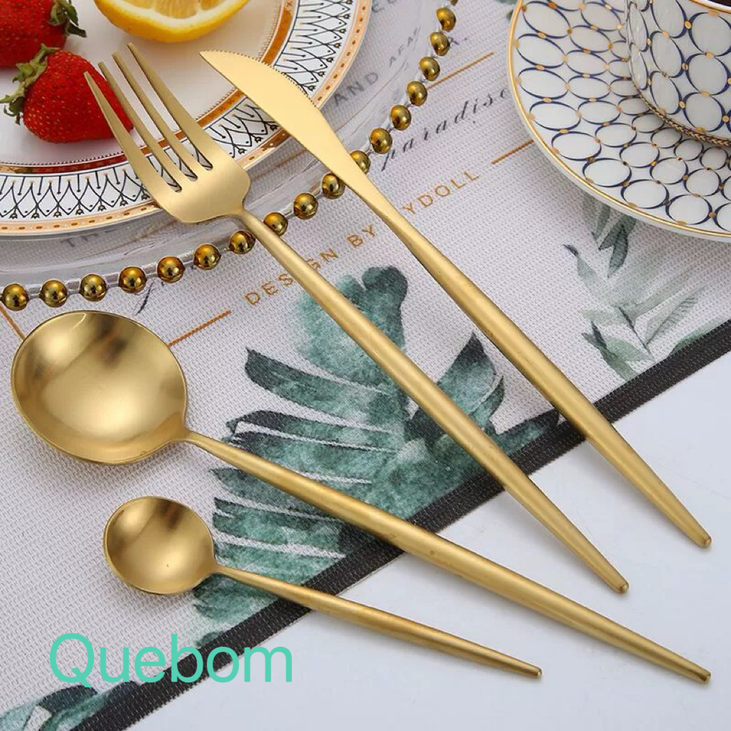 Talheres de Aço Inox 24 Peças Cor Dourada , Garfo e Colher e Faca QUE BOM