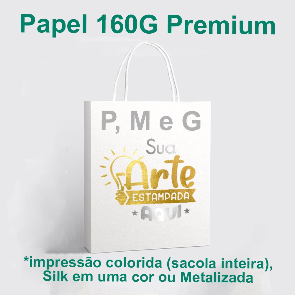 Sacolas Personalizadas de Papel Branco Kraft ou Offset Premium Com Sua Logo P ou M